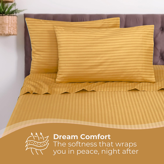 Pro Linen Basic 210TC 1cm Satin Stripe Bedding Set | Pure Cotton | Canary