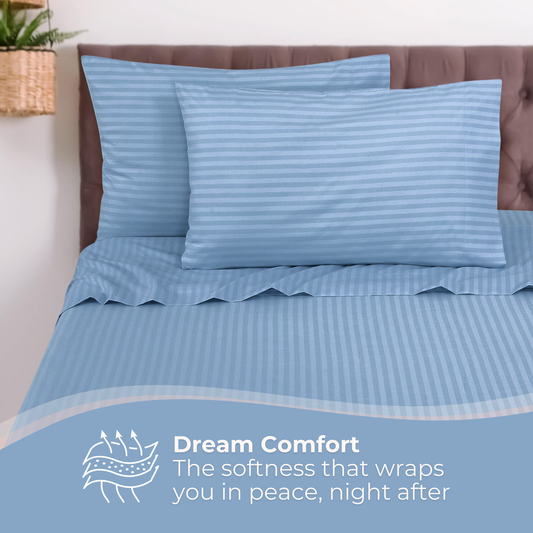 Pro Linen Basic 210TC 1cm Satin Stripe Bedding Set | Pure Cotton | Powder Blue