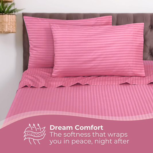 Pro Linen Basic 210TC 1cm Satin Stripe Bedding Set | Pure Cotton | Bubblegum